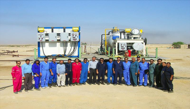 | Scope of Work | The mobile oil treating package is in fact, a complete production and desalting unit, compacted and mounted on four trailers, interconnected swivelled joints high pressure piping and armored cables. This package could be moved on quickly to worked-over and / or new drilled oil wells to treat the polluted oil and prevent wastage of oil by burning it in burnpits in order to control environmental pollution. Maximum throughput : 3000 BBL/D |