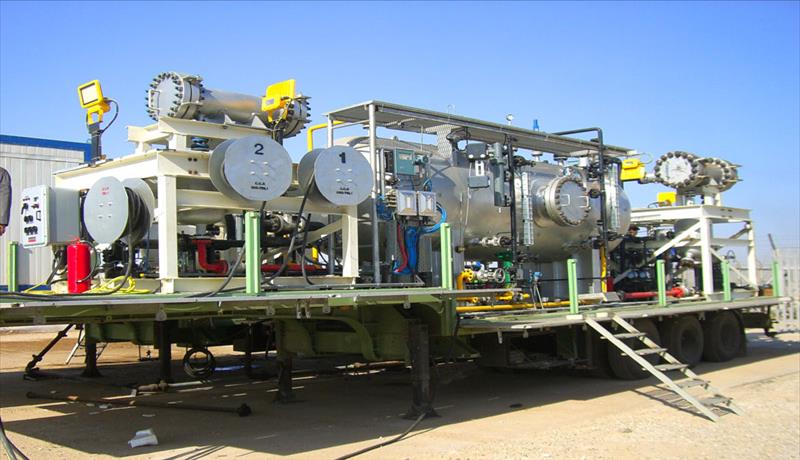 | Scope of Work | The mobile oil treating package is in fact, a complete production and desalting unit, compacted and mounted on four trailers, interconnected swivelled joints high pressure piping and armored cables. This package could be moved on quickly to worked-over and / or new drilled oil wells to treat the polluted oil and prevent wastage of oil by burning it in burnpits in order to control environmental pollution. Maximum throughput : 3000 BBL/D |